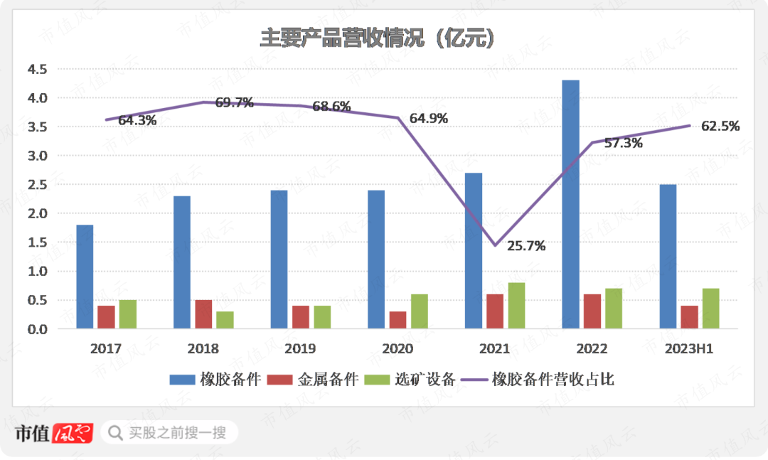 2023年上半年,橡胶备件营收为2.5亿元,同比增长23%;选矿设备营收为0.65亿元,同比增长134%,表现较好。