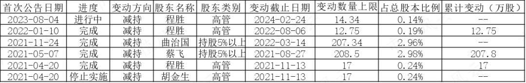 需要留意的是,公司首发限售股在2023年2月解禁。2021年以来,公司多位股东进行了减持。2023年8月,副董事长、总经理程胜推出新的减持计划,减持比例不高,目前还在减持中。