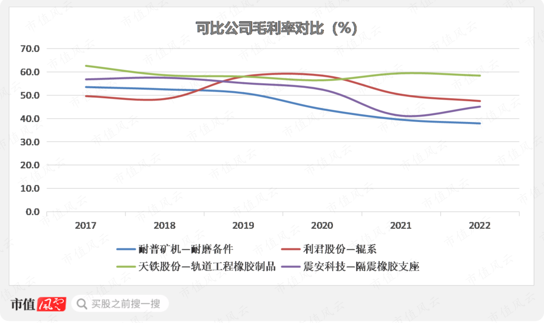 目前国内尚无与公司同类型上市公司,风云君选取部分类似企业以及专用橡胶制品公司进行对比。