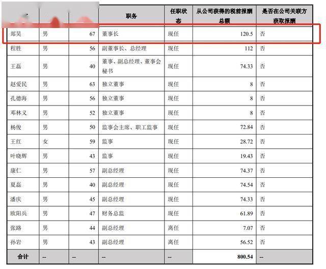 在管理层薪酬方面,耐普矿机董事、监事和高级管理人员在2024年的报酬合计为800.54万元。其中,公司董事长、总裁郑昊的薪酬最高,达到了120.5万元。