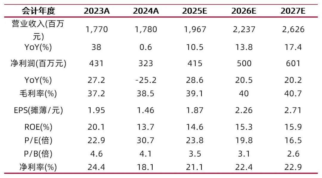 公司发布2024年年报及2025年第一季度报告。2024年,公司实现营业收入17.8亿元,同比+0.59%;实现归母净利润3.23亿元,同比-25.19%;扣非归母净利润3.07亿元,同比-27.87%。25Q1公司实现营业收入3.25亿元,同比-13.30%;归母净利润0.50亿元,同比-36.84%。