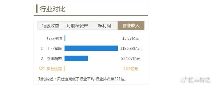 从营业收入方面来看,贝仕达克低于行业平均,行业排名第320位。