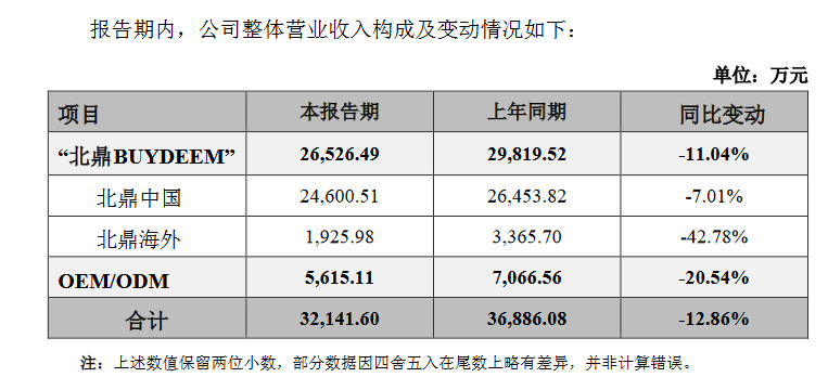 在这样的市场环境中,上半年的业绩也在持续承压。2023上半年财报数据显示,自有品牌“北鼎BUYDEEM”在国内市场实现营收约2.46亿元,同比下降7.01%。