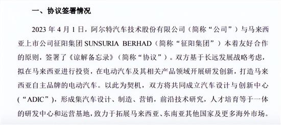 阿尔特4月3日公告,4月1日,公司与马来西亚上市公司征阳集团SUNSURIA BERHAD签署了《谅解备忘录》。