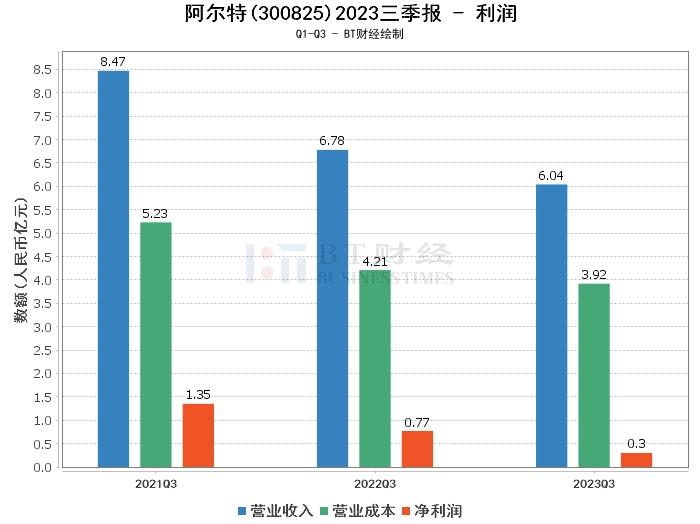 在利润方面,阿尔特公司2023年三季度的营业收入为6.04亿元,相比上年同期的6.78亿元有所下降。营业利润为3405.48万元,较上年同期的9427.32万元大幅减少。营业成本为3.92亿元,相比上年同期的4.21亿元有所减少。净利润为2982.58万元,较上年同期的7823.04万元大幅减少。毛利率为35.07%,较上年同期的37.88%有所下降。净利率为4.94%,较上年同期的11.54%大幅下降。