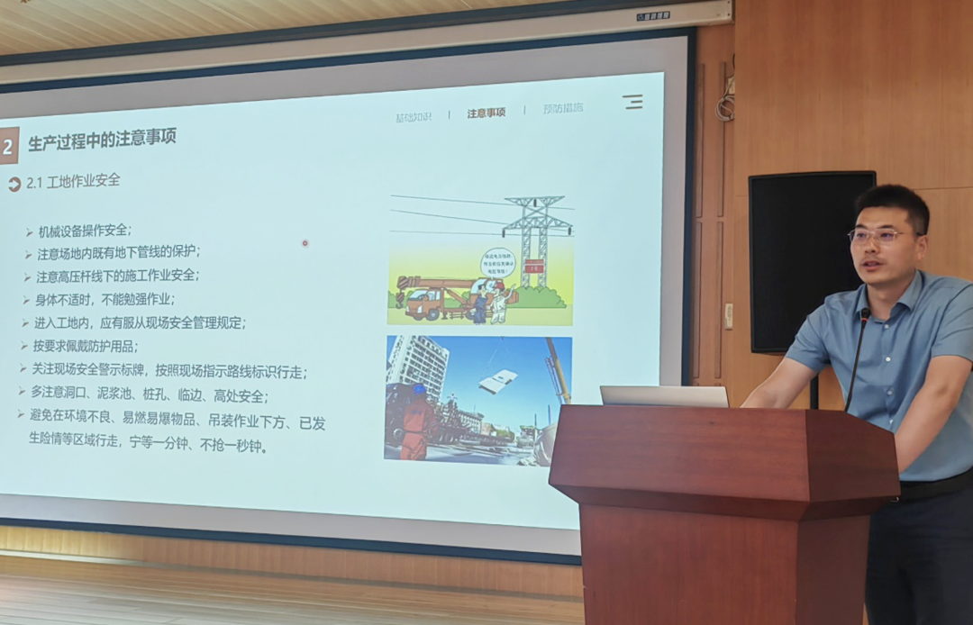 地下工程设计咨询研究院副总经理耿晔宽围绕2023年安全生产月主题“人人讲安全、个个会应急”进行了生产安全培训,介绍了安全生产基础知识、生产过程中的注意事项以及如何预防事故等内容,强调始终要把安全生产放在首位,并做好预防工作。此次安全培训旨在提高大家的安全意识,通过流程管理杜绝安全生产事故。培训后谈体会环节,工程勘察事业部和岩土检测事业部提出了建立生产安全互查机制的建议。