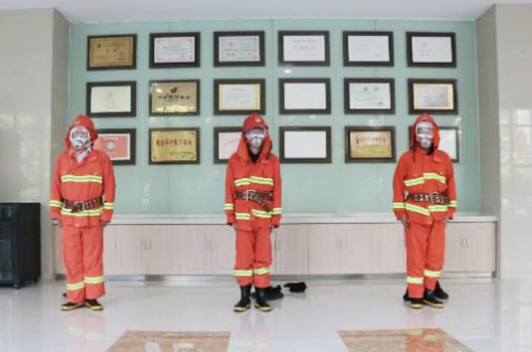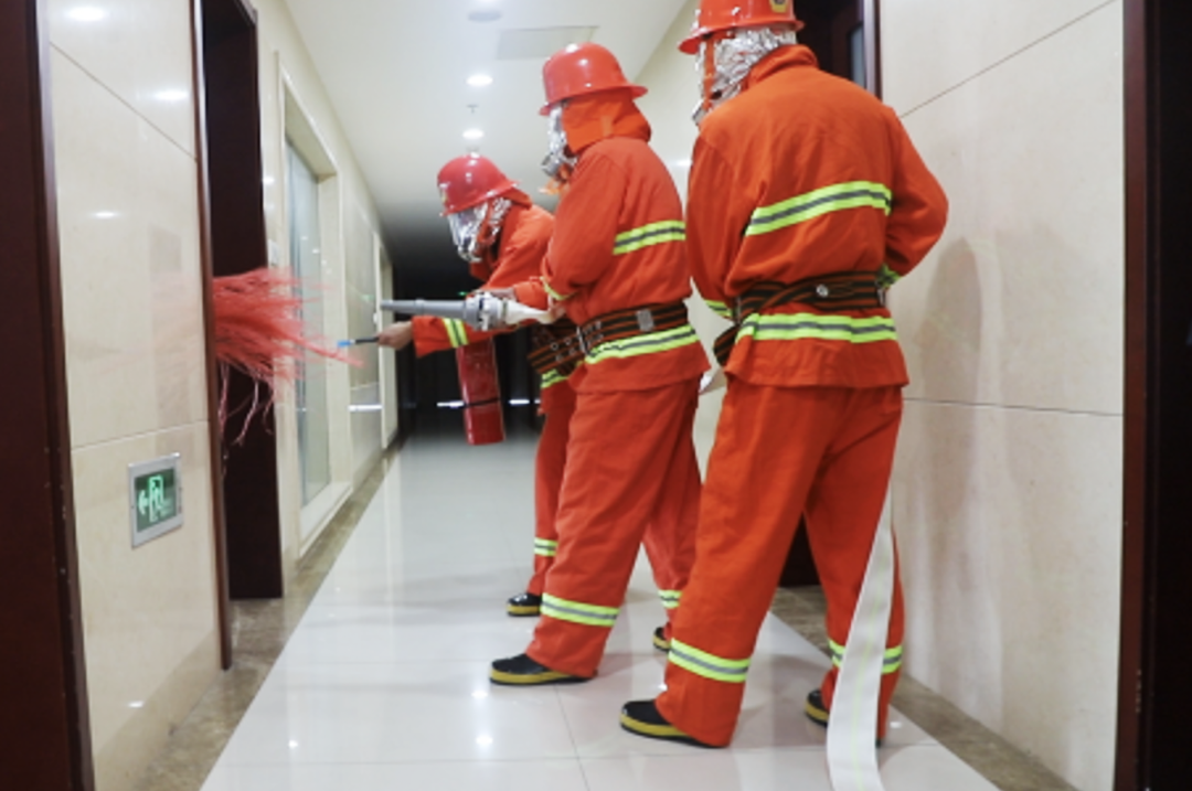 演练开始后,监控室值班人员发现火情并向现场总指挥报告,总指挥在接到报告后分别向灭火组、设备保障组和警戒组下达命令,各工作组迅速到位并参与灭火和人员疏散:监控员利用消防广播进行火情警报;各楼层安全负责人立即组织本区域员工弯腰靠墙、捂住口鼻、井然有序地按照规定路线撤离至安全区域;灭火组身着消防服,持灭火水带快速到达起火点将火扑灭......从发现火情到人员安全疏散,整个演练过程仅用了不到8分钟,本次演练组织有序、反应迅速,取得了圆满成功。