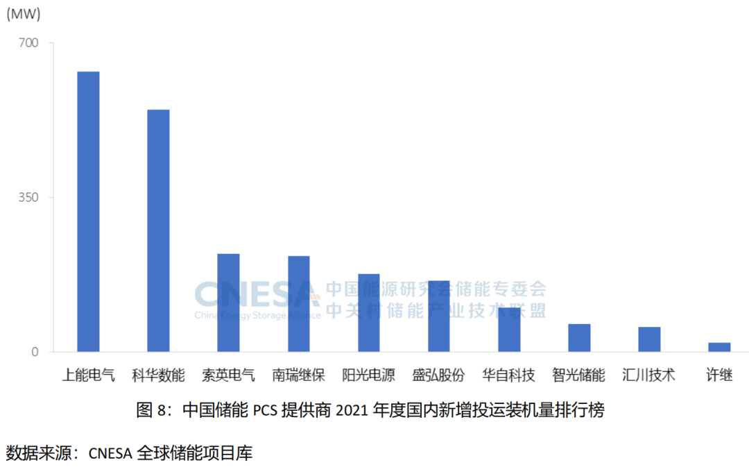 4月26日,中关村储能产业技术联盟(CNESA)顺利召开“2022年全球储能行业发展回顾与展望研讨会”,同期重磅发布行业风向标《储能产业研究白皮书2022》及“2021年度中国储能企业排行榜”。排名结果显示,在2021年国内新增投运装机规模Top10储能PCS提供商中,上能电气位列第一。