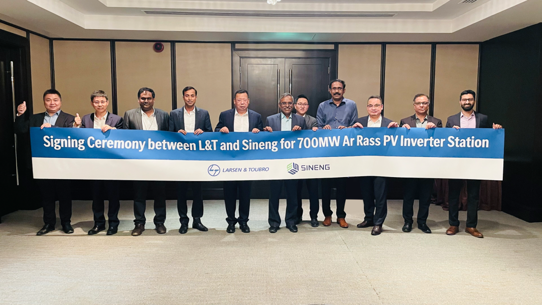 近日,上能电气与Larsen Toubro(以下简称L T)签署沙特700 MW Ar Rass光伏项目逆变设备供货协议,该项目是迄今为止作为沙特阿拉伯国家可再生能源计划(NREP)进行招标的最大光伏项目之一,也是上能电气持续深耕中东市场的又一重大成绩。全面投运后将为沙特阿拉伯中部地区约13.2万户家庭提供绿色电能,助力中东加速能源低碳转型和“2030愿景”实现。