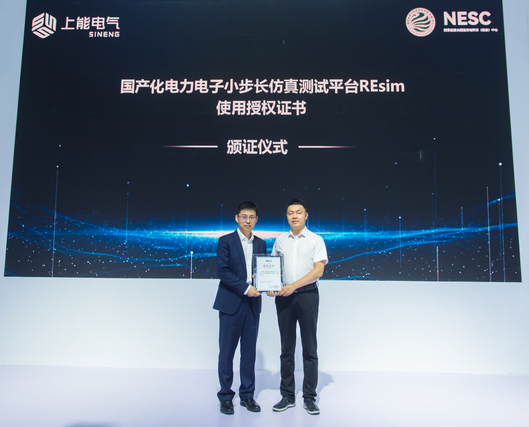 近日,上能电气获得由中国电科院国家能源太阳能发电研发(实验)中心授予的“国产化电力电子小步长仿真测试平台REsim”使用授权证书。这是电科院向国内逆变器厂家颁发的首张REsim使用授权资质,标志着上能电气技术研发、产品创新服务水平再迈新台阶。