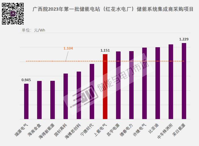 据悉,该项目之前公布了13家中标候选人,报价范围0.945元/Wh-1.229元/Wh,均价1.104元/Wh。最低报价来自天津瑞源电气有限公司;最高报价来自上海采日能源科技有限公司。
