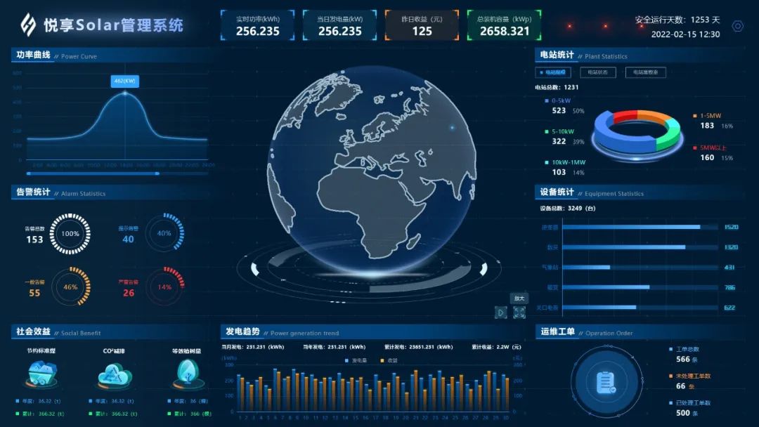 针对电站的远程运维,上能电气自主研发悦享SOLAR系统监控平台。平台可以免费开放给用户使用,包含手机端及网页端界面。在电站出现对应故障时,系统将以短信、邮件、APP通知等方式主动向电站运维负责人推送警报。