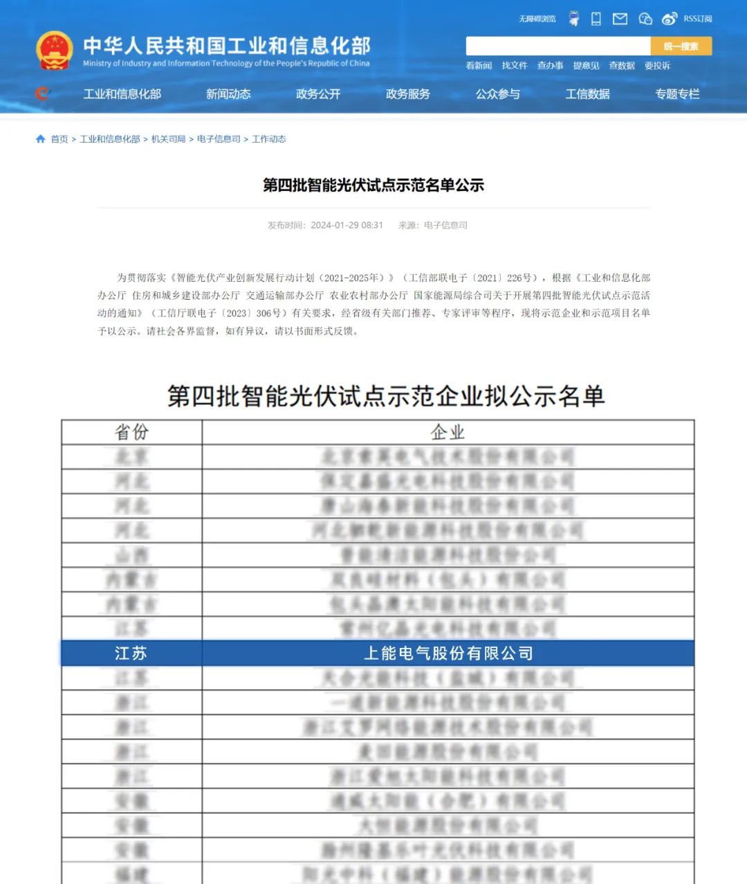 近日,工业和信息化部公布“第四批智能光伏试点示范名单”,上能电气凭借创新的产品工艺技术、先进的智能化制造工厂和领先的数字化管理水平,成功入选智能光伏试点示范企业,喜迎2024开门红。