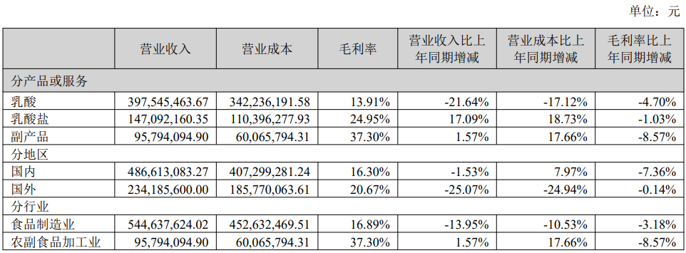 金丹科技表示,2023年上半年宏观经济形势错综复杂,中美贸易战加剧、俄乌冲突持续、欧洲社会治理危机多发、国内经济增速放缓、下行压力加大、需求收缩、供给预期减弱、居民收入和消费能力下降等重重不利因素,给企业生产经营带来了严峻挑战和极大难度。金丹科技是我国乳酸行业的龙头企业,公司拥有18.3万吨乳酸及其衍生产品生产能力,主要产品包括各类乳酸、乳酸盐和乳酸酯等,产品广泛应用于食品、饲料、生物降解材料、工业、医药等领域。产品销往欧洲、日本、韩国、东南亚、美洲、大洋洲等90多个国家和地区。