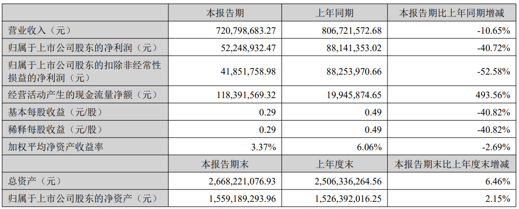 8月29日,金丹科技(300829.SZ)公布中报,2023年上半年营业收入7.21亿元,同比下降10.65%;归母净利润5224.89万元,同比下降40.72%。