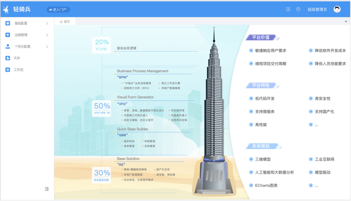 轻骑兵低代码开发平台,作为以少量代码(低代码)或无需代码(零代码)即可快速生成高体验应用程序的开发平台,历经数次升级和迭代,现已正式拥有企业版和云服务版两个版本,可以为大型央企国企和中小企业提供个性化服务。平台提供可视化设计器、工作流引擎、移动开发套件,支持“开箱即用”的130余项基础服务,可以在最大程度上降低应用程序开发门槛,实现“会画图就会编程”,让企业业务人员可以根据业务需求灵活开发应用程序,成为赋能企业数字化转型的“加速器”。
