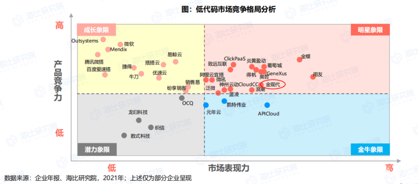 受邀参加无代码标准第二次研讨会,与业界专家共同研讨无代码标准,是对金现代在低代码/无代码领域贡献的肯定,这并非公司首次在该领域获得权威认可。此前,公司还积极参与由信通院牵头的国内首个低代码行业标准——《低代码/无代码开发平台通用能力要求》的编制工作;2021年12月21日公司旗下的轻骑兵低代码开发平台被纳入《2022中国企业数智服务市场趋势洞察报告》研究范围,并位居产品竞争力和市场表现力更强的“明星象限”。
