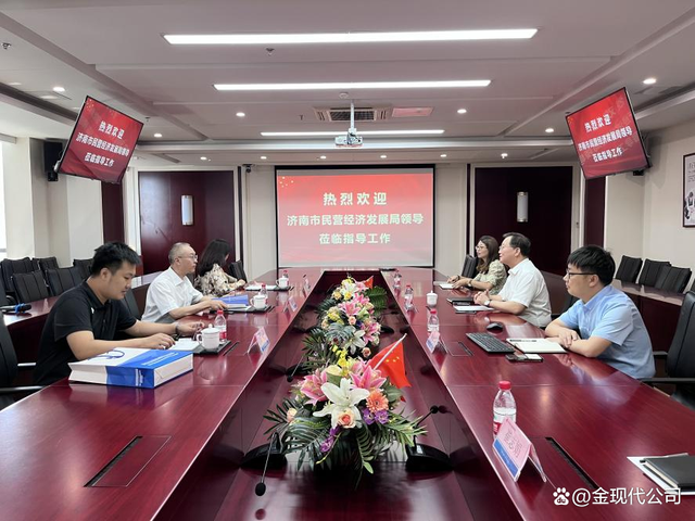近日,济南市民营经济发展局局长潘荣庆等领导莅临金现代公司考察调研,公司董事长黎峰热情接待并组织座谈交流,双方就助推企业数字化转型进行了深入探讨。