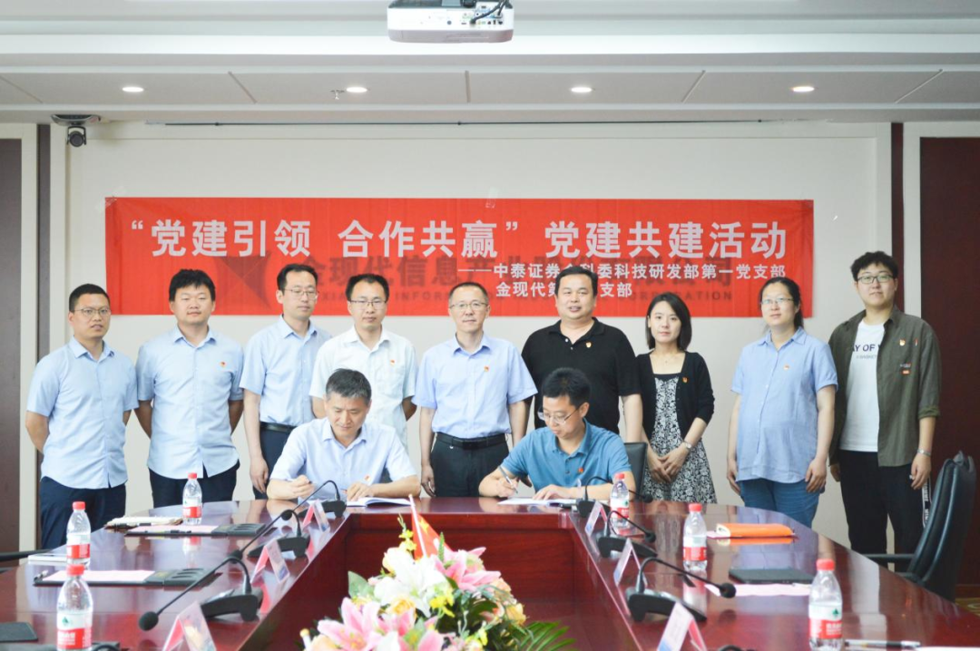 近日,金现代信息产业股份有限公司第二党支部与中泰证券股份有限公司金科委科技研发部第一党支部联合开展党建共建活动,并签订结对共建协议,以党建合作巩固业务合作,实现优势互补和资源共享,汇聚推动高质量发展的精神力量。