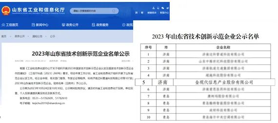 日前,山东省工业和信息化厅公示2023年山东省技术创新示范企业名单,金现代凭借在低代码、人工智能等多领域的技术创新成果与沉淀,被认定为2023年山东省技术创新示范企业。