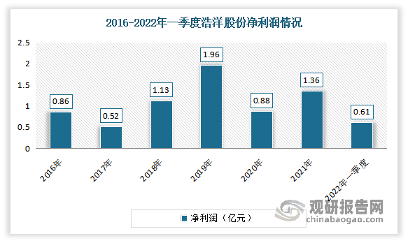 公司营业净利润走势同收入走势相同。受疫情影响,2020年该指标有所下降;但2021年起迅速回升,同比增长率高达54.28%,净利润达到1.36亿元;2022年第一季度净利润达到0.61亿元。