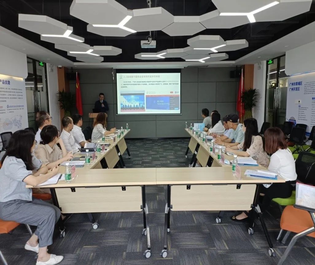 调研小组第二站前往广州知识产权交易中心(简称:广知)进行交流活动。现场出席会议的有广知的副总经理罗少春、交易运营部总监程明、金融创新部总监冯伟杰、科技创新服务中心总监蔡子萱、综合管理部经理陈彦汝以及广州开发区知识产权保护协会秘书长赖洪川、秘书长助理吴玲。会上,广知领导介绍了其主要产品及服务,以及在知识产权交易方面所取得的成绩;广州开发区知识产权保护协会向调研小组详细介绍了广州开发区知识产权工作情况及协会的活动开展情况。后续双方就知识产权运营工作进行了深入探讨。