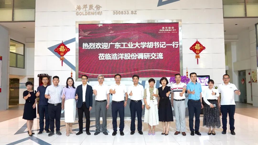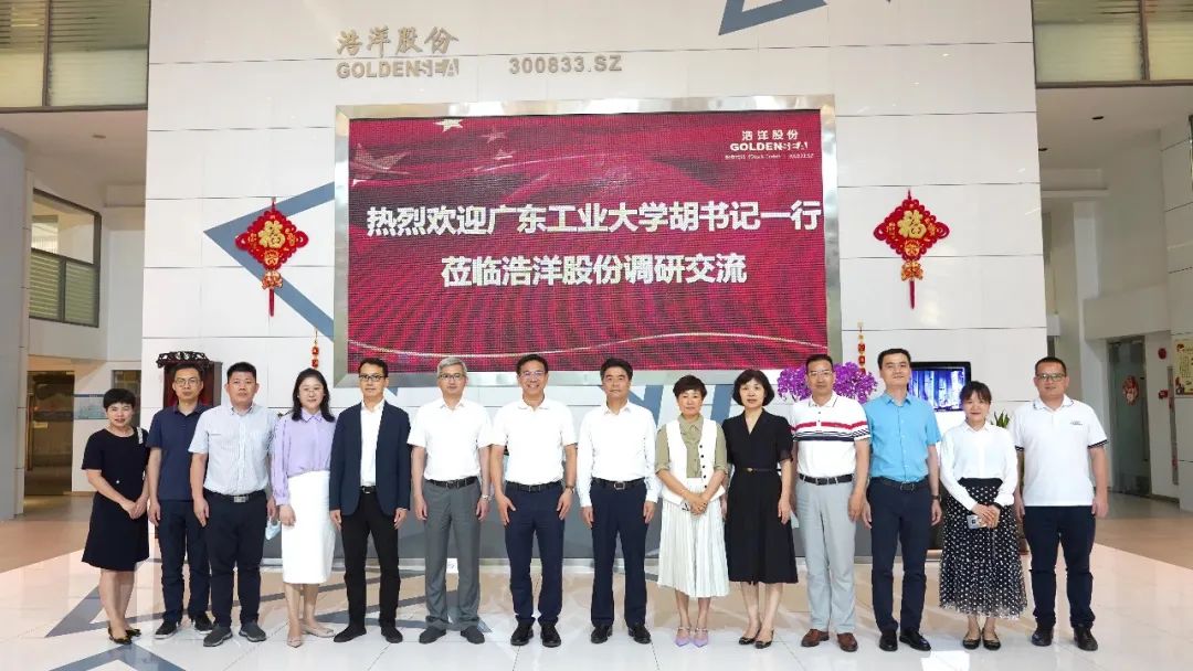 5月18日,广东工业大学党委书记胡钦太、党委副书记陈卓武、学生工作处处长许泽浩、对外联络与校友事务办公室主任刘琼辉、党政办副主任刘杰文、信息工程学院党委书记邵际珍、信息工程学院院长韩国军、信息工程学院副院长方毅等莅临浩洋股份广州总部参观交流,浩洋股份董事长蒋伟楷带公司领导及骨干接待,双方就产学研合作以及人才引进等内容,积极地开展交流和沟通。