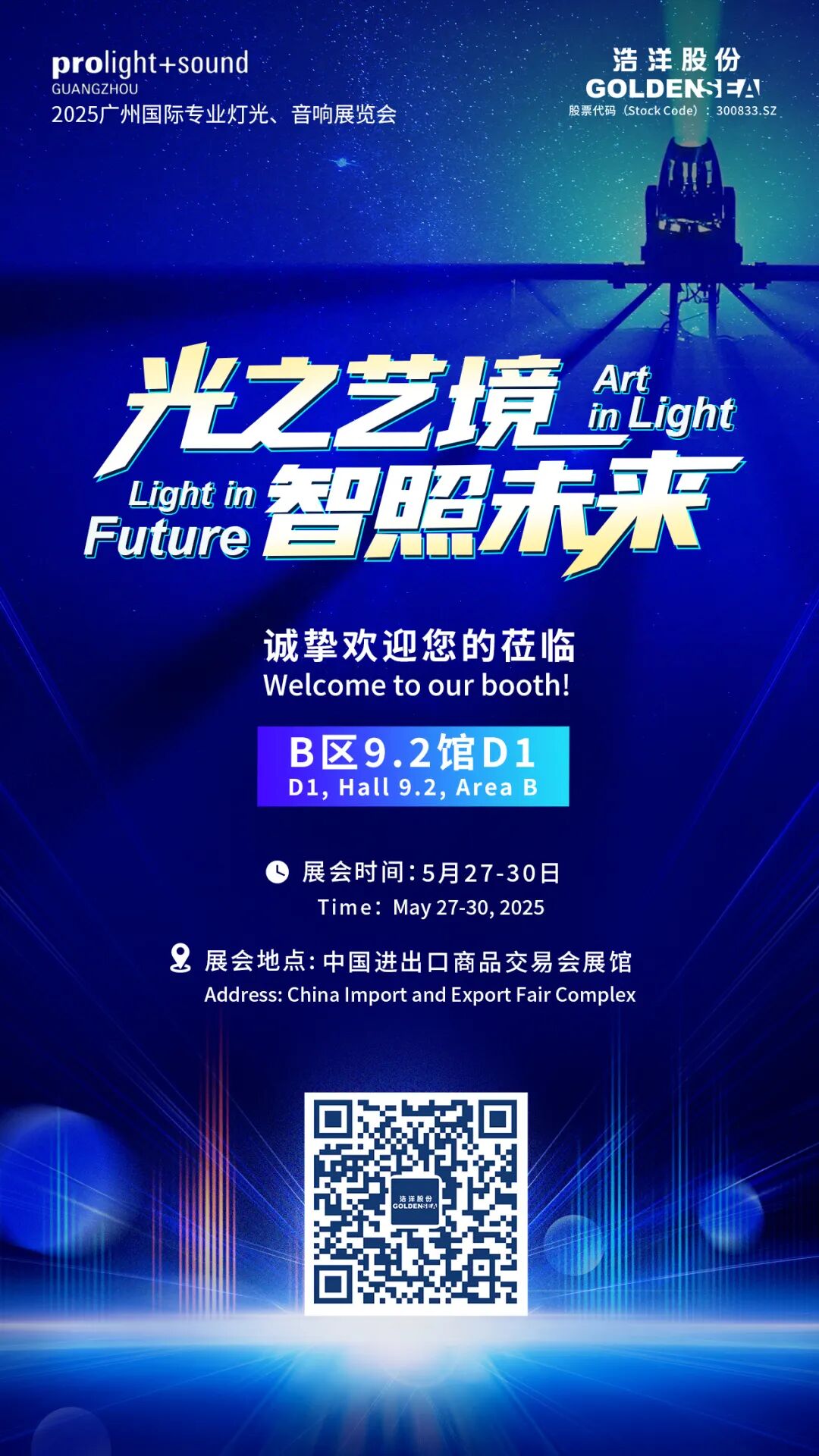 The 23rd ProLight+Sound Guangzhou had its grand opening on May 27th across Areas A, B, and D of the Canton Fair Complex. Golden Sea showcased its exceptional products from its stage lighting, architectural lighting, stage truss and UV disinfection brands at Booth D01 in Hall 9.2, and attracted global attention with its innovative solutions. We are looking forward to meeting you!