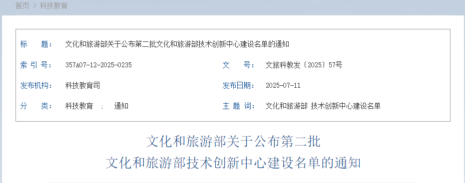 近日,第二批文化和旅游部技术创新中心建设名单正式公示,这份名单彰显了文旅行业在技术创新领域的积极探索与突破,将为文旅产业的高质量发展注入新的活力。
