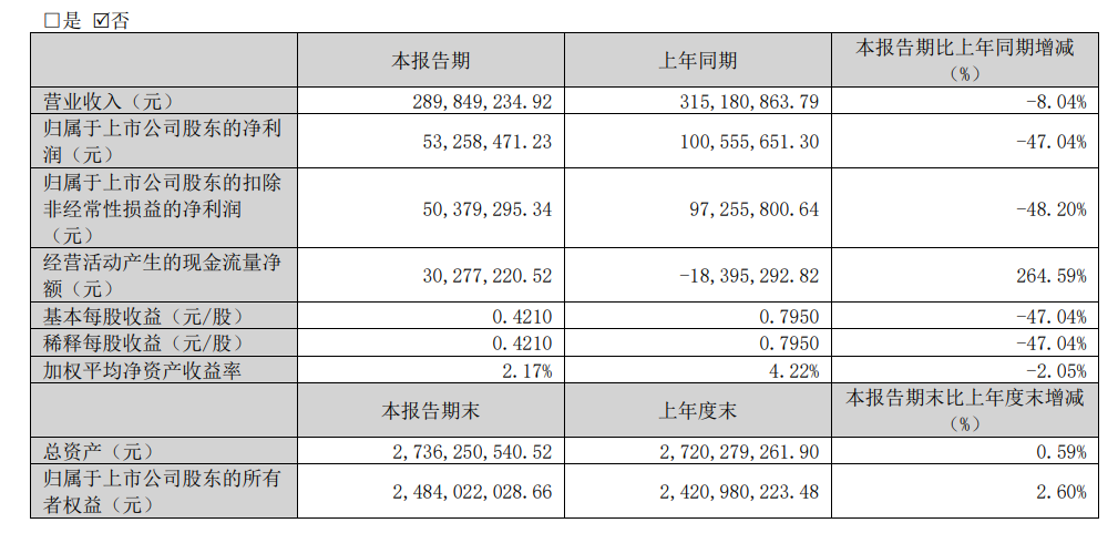 2025年第一季度,浩洋股份营业收入2.9亿元,同比减少8.04%;归属于上市公司股东的净利润5325.85万元,同比减少47.04%。