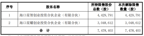 今日,星辉环材(300834.SZ)有7,478,403股解除限售并上市流通。