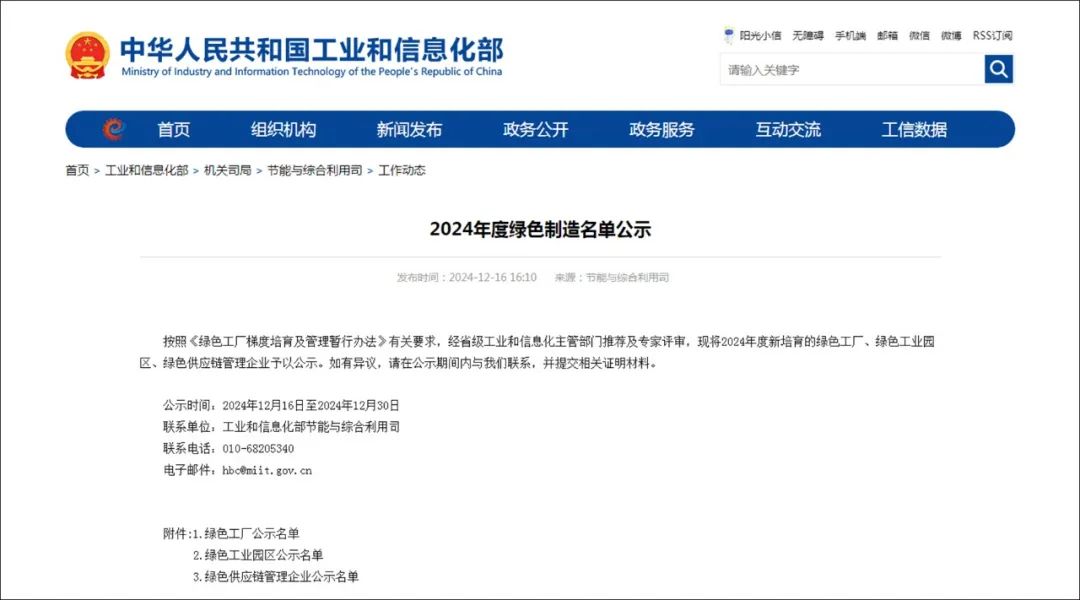 近日,工业和信息化部节能与综合利用司公示了2024年度绿色制造名单,安徽龙磁科技股份有限公司荣获国家级“绿色工厂”荣誉称号。