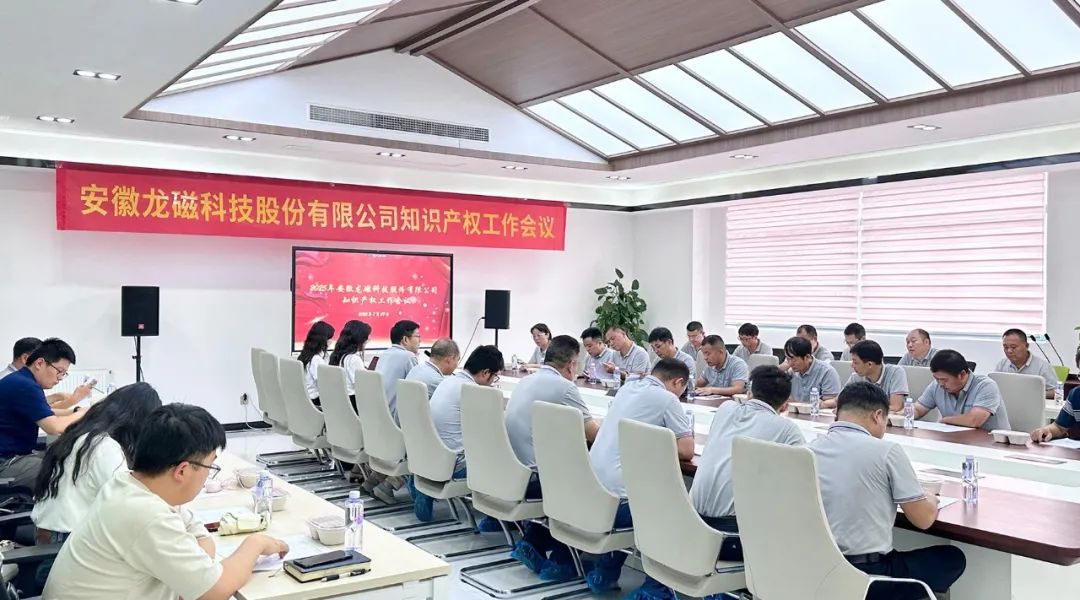 7月29日,龙磁科技2025年知识产权工作会议在庐江生产基地成功召开。会议系统总结了2024年度知识产权工作成果,表彰了年度创新先进代表,并部署了下半年重点任务。各子公司知识产权负责人、核心发明人及相关人员参会。