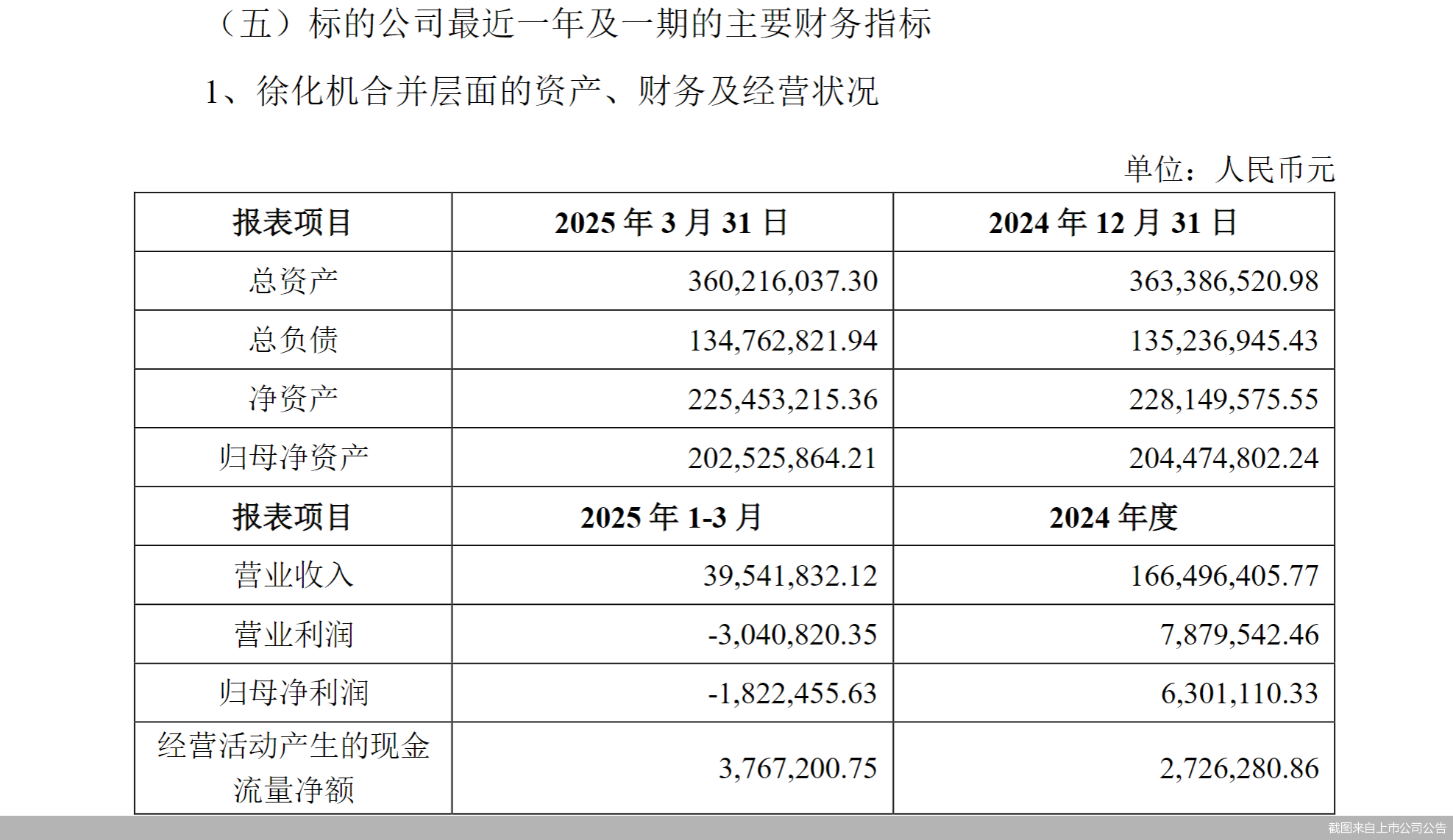 需要指出的是,浙江力诺本次收购的标的公司徐化机2025年一季度净利为亏损状态。具体来看,2024年以及2025年一季度,徐化机实现营业收入分别约为1.66亿元、3954.18万元;对应实现归属净利润分别约为630.11万元、-182.25万元。