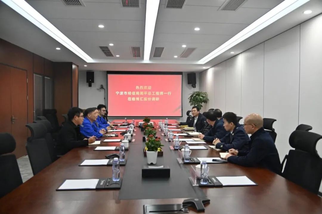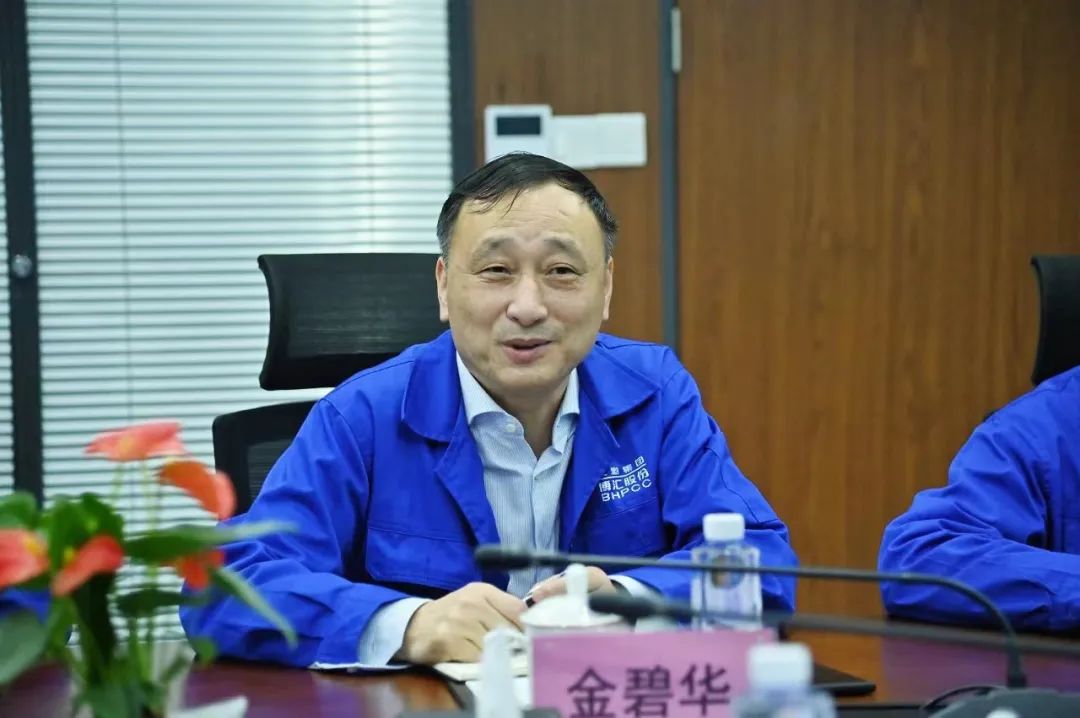2024年1月4日,宁波市经信局总工程师周平一行为打造世界级绿色石化产业集群莅临博汇股份调研企业绿色石化发展情况,董事长金碧华陪同交流。