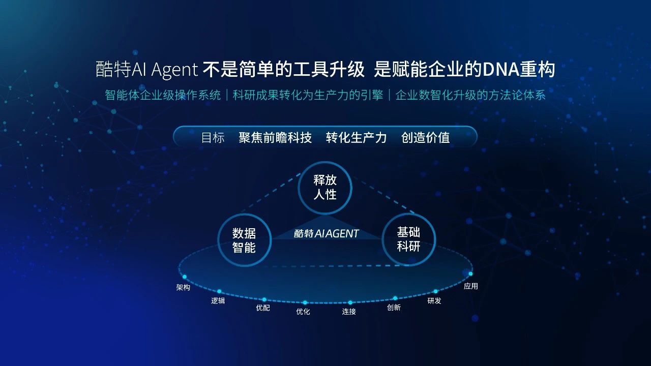 调研中,张代理院长介绍,酷特智能以公司数智化能力建设为抓手,以酷特AI Agent企业级操作系统为核心驱动力,致力于打造时尚领域的高阶供应链系统。酷特AI Agent是科研成果转化为生产力的引擎,是企业数智化升级的方法论体系,以规则为基础的目标导向,数据驱动,数据评价,可以降低管理成本超过70%,提升效率超过20%,助力企业持续优化。