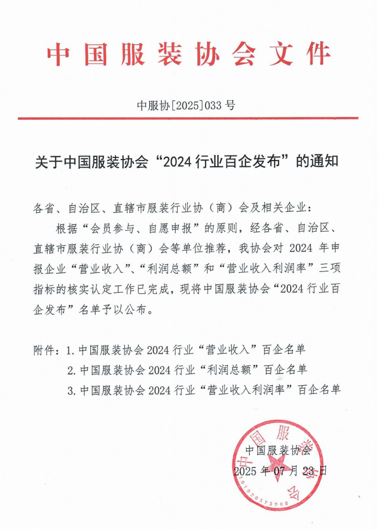 中国服装协会表示,处于深度调整和转型升级中的百家企业是推动服装制造强国向时尚强国跃迁的中流砥柱,对中国服装行业高质量发展具有较强的引领带动作用。