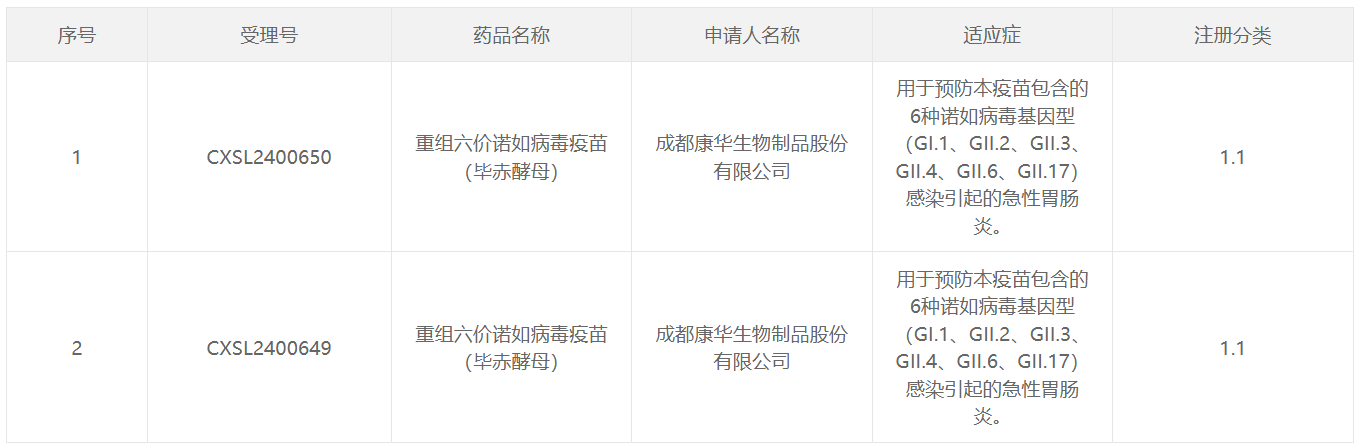 诺如病毒是全球范围内引起全年龄段人群急性肠胃炎流行及暴发的主要病原体之一,目前全球范围内尚无对症治疗药物或预防疫苗产品获批上市。康华研发的重组六价诺如病毒疫苗是采用基因工程技术构建的基于病毒样颗粒(VLPs)的创新型疫苗,适用于预防诺如病毒感染及其引起的急性肠胃炎,理论上可以预防90%以上的诺如病毒感染及其引起的急性肠胃炎。