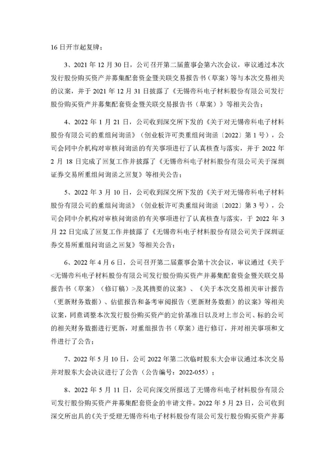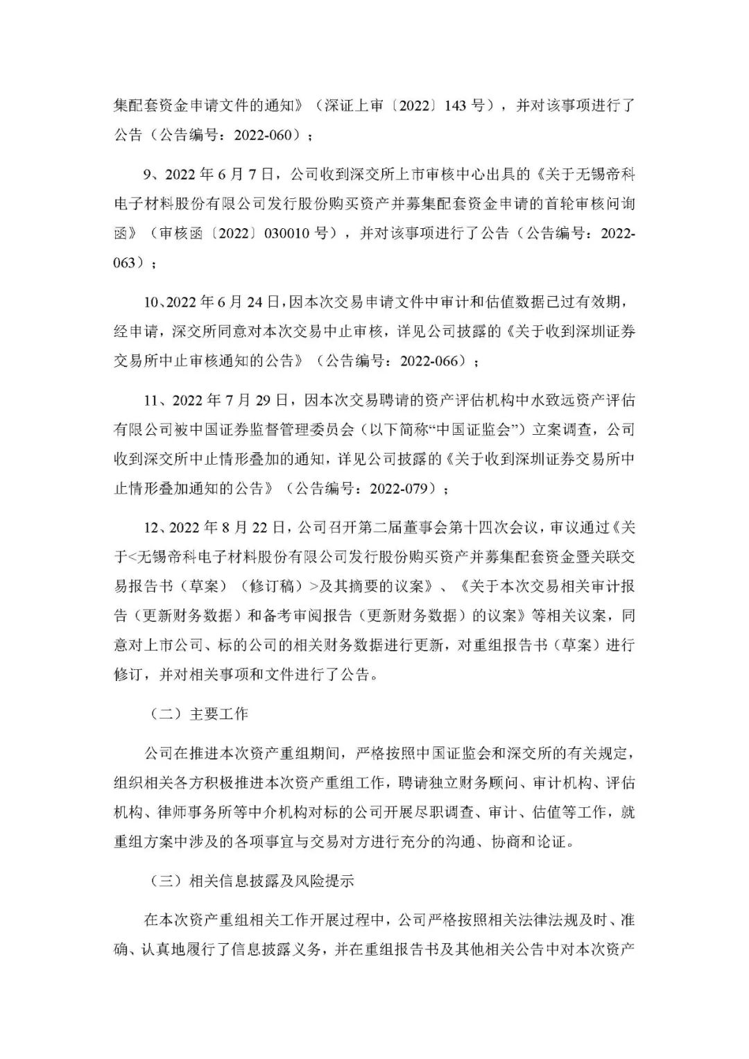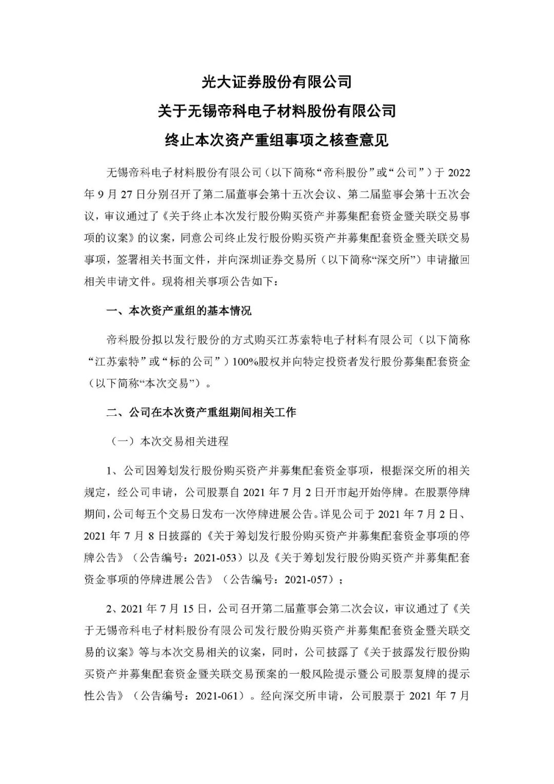 9月27日,帝科股份发布公告称:于 2022年 9 月 27 日分别召开了第二届董事会第十五次会议、第二届监事会第十五次会议,审议通过了《关于终止本次发行股份购买资产并募集配套资金暨关联交易事项的议案》的议案,同意公司终止发行股份购买资产并募集配套资金暨关联交易事项,签署相关书面文件,并向深交所申请撤回相关申请文件。