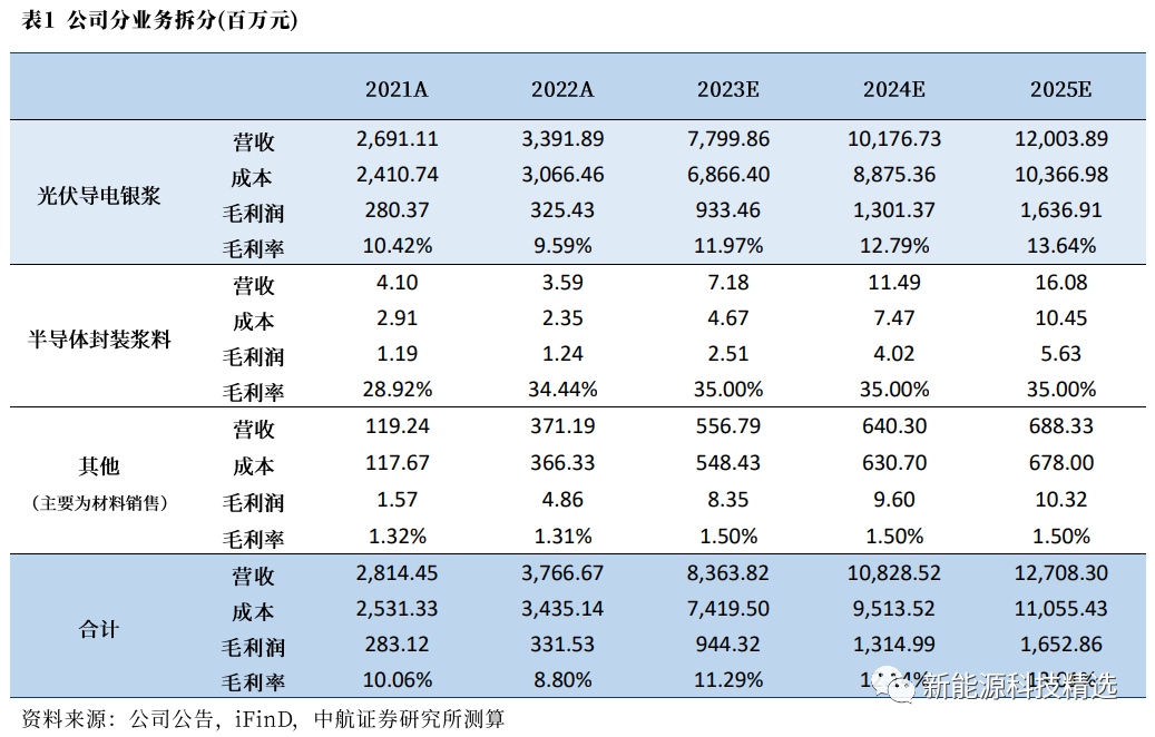 N型产品放量,银浆需求旺盛,公司TOPCon产品市占率领先;N型银浆产品丰富,布局上游银粉,降低生产成本,保障供应链安全,提升盈利能力。预计公司2023~2025年归母净利4.13/6.38/8.35亿元,对应2023~2025年PE 16/11/8倍。首次覆盖,给予“买入”评级。