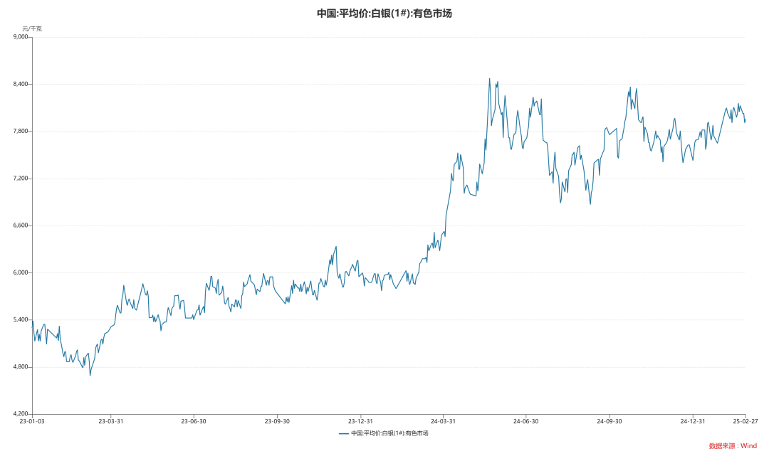 (4)进一步分解帝科股份2024年的销量及单价,可以看到:2024年帝科股份全年电子专用材料(即:浆料)销量2041吨,同比增长19%,其增速远低于主营业务收入增速(43%);帝科收入的增长,只有大概一半左右是由销量增长所推动,另一半是靠产品价格上涨所推动。若进一步分析浆料主要原材料(白银)在2023-2024年的价格,可以发现:白银价格上涨30%、而帝科的产品单价只上涨20%,两者之间的差额是由浆料产品平均银含量的下降、毛利率的下降所共同导致的。