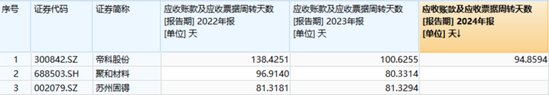 (6)帝科股份2024年末的应收款项(应收票据、应收账款、应收款项融资、合同资产)合计45.33亿元,显著高于其应付款项(26.12元)。进一步计算帝科股份2024年的应收款项及应收票据周转天数,高达95天,虽然比2022、2023年有所下降,但仍然高于同行,体现出浆料企业为电池客户垫资的商业本质及帝科股份更为激进的策略。