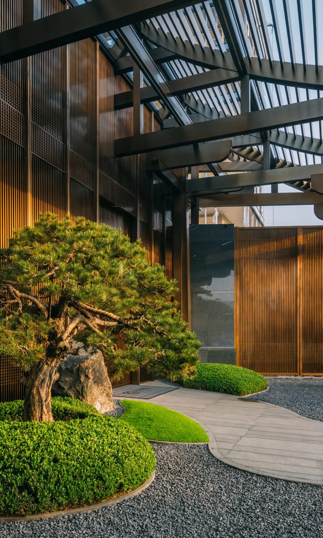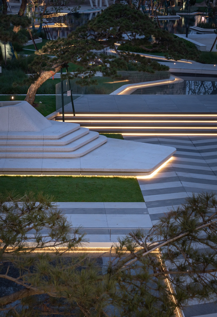 在设计伊始,如何让一个过渡空间兼有艺术化的装置和仪式性的礼遇?成为了必须面对的问题。山水比德赋予其“有民族使命与文化自信的产品”的设计高度,以中国式现代艺术的设计规格,深度挖掘当地文化,将文化元素巧妙地融入景观设计,最终打造出山水比德“现代体·传统心”设计原则下的创造性演绎,用以回应中国式现代化栖居的时代主题。