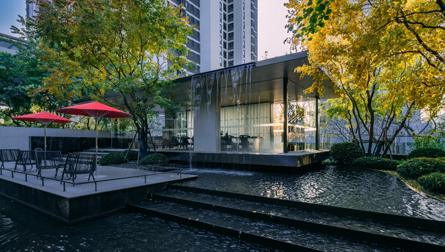 如何实现天和之上,再造天悦?山水比德赋予了金沙天悦景观设计一个核心关键词“东方雅院”,以文化性、引领性、不可复制性,展现一个城市级顶端项目:做出有传承商丘文化责任感的产品,达到“景观之上是生活,物质之上是文化”的精神传递。项目设计灵感源于商丘的应天书院。金沙天悦将书院文化提炼,进行现代空间演绎,大胆融入水院概念,以水比明镜,以泉拟书声,延续应天书院礼制空间,以书院文人雅士生活场景映射未来生活雅趣。