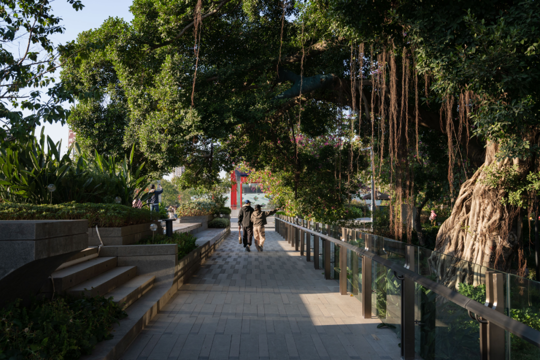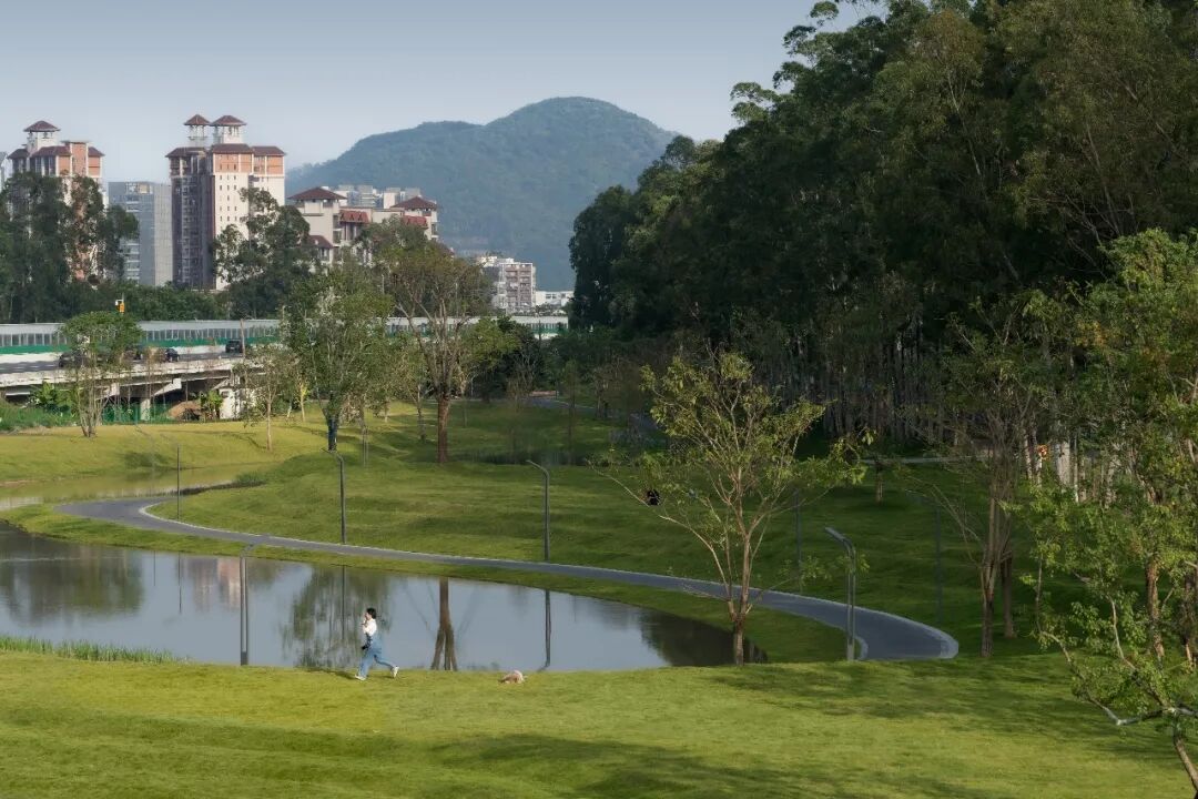 顺德陈村NCC公园是一个跨越经济周期建设的城市更新范例。项目直面基底复杂的城中村环境,原址存在闲置危房、水体污染(居民直接排污、流动性差、淤泥散发异味)及村民违建等问题。在顺德区“以水兴城”战略引领下,项目所在地陈村释放了超14万平方米滨水空间。项目以“凤水长洲、浮翠流丹”为设计概念,依托佛陈大道等交通骨架,融合岭南水乡文化与产业底蕴,打造“千年花乡·多彩陈村”的花乡生活剧场,旨在重塑城市形象、激发新城活力。