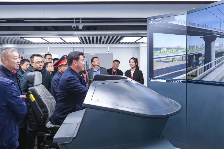 在认真听取了企业发展、科技研发等情况的介绍后,考察组一行深入捷安高科虚拟仿真基地,针对轨道交通、应急安全等领域的虚拟仿真科技成果进行观摩交流,实地考察了城轨列车检修操作实训装置、城轨模拟驾驶系统、城轨机电仿真实训系统、城轨牵引变电以及虚拟焊接、虚拟灭火、心肺复苏等仿真实训系统。