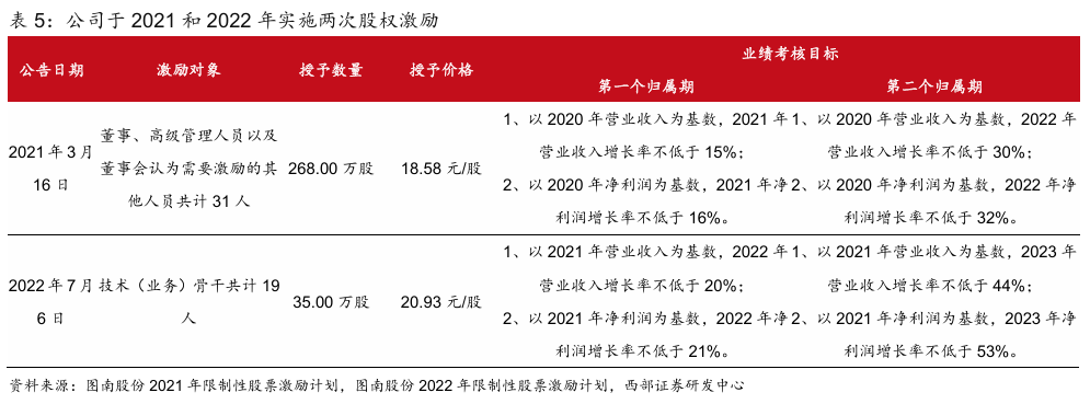 公司连续两年实施股权激励,保障公司长期发展。1)公司于2021年授予包括董事、高级管理人员以及董事会认为需要激励的其他人员的共31人共计268万股限制性股票,占公告日股本比例1.34%,授予价格18.58元/股。2)公司于2022年授予19名公司技术(业务)骨干共计35万股限制性股票,占公告日股本比例0.12%,授予价格20.93元/股。两次激励计划授予的限制性股票在授予日起满12个月后分二期归属,归属的比例分别为50%、50%。2024年9月12日,公司2022年限制性股票激励计划第二个归属期归属股份共22.425万股完成归属登记。截至2024年末,公司两期限制性股票激励计划均已实施完毕。公司股权激励计划的实施建立、健全了公司长效激励约束机制,对保障公司战略规划和经营目标的实现起到了积极作用。