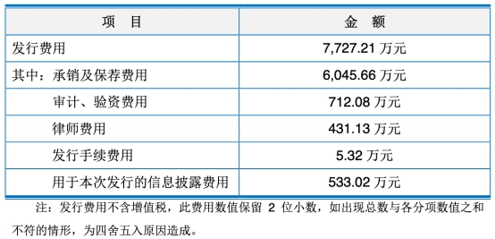 科思股份上市发行费用总额为7727.21万元,其中,保荐机构民生证券与联席主承销商华英证券获得保荐及承销费用6045.66万元,天衡会计师事务所(特殊普通合伙)获得审计验资费用712.08万元,北京市竞天公诚律师事务所获得律师费用431.13万元。