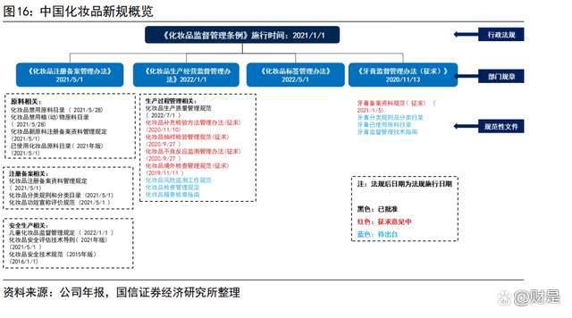 国内化妆品行业管理趋严,新规落地利好国产龙头原料商。2021 年是中国化妆品行业监管新时代元年,《化妆品监督管理条例》自21 年1 月1 日起施行,伴随而来的是对化妆品原料更加精细、严格的管理。21 年5 月1 日施行的《化妆品新原料注册备案资料管理规定》采取风险分类管理模式,规定对具有防腐、防晒、着色、染发、祛斑美白功能的较高风险化妆品新原料实行注册管理,且设定三年监测期,新原料注册人在监测期内应当每年报告新原料的安全使用情况。同时施行的《化妆品功效宣称评价规范》也规定到:宣称具有防晒功能的化妆品必须进行人体功效评价试验进行验证。化妆品行业监管从原先的重事前监管转向重事后监管,功效愈发重要,作为化妆品功效核心因素的化妆品活性成分成为功效时代的重中之重,公司作为深耕防晒剂二十余年、具有良好品控体系和研发优势的国产龙头化妆品原料商,未来有望进一步提升市场地位。