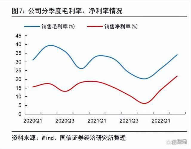 毛利率方面,公司 22H1 毛利率为 30.12%,同比略有减少2.48pct,但受益提价措施的接连落地,22Q2 毛利率环比增加 7.78pct,同比提升2.13pct。费用率方面,22H1 公司销售费用率为 0.87%,同比下降 0.25pct;管理费用率为5.96%,同比下降 2.32pct;整体费用水平同比均有下降。此外,22H1 年研发费用率为4.24%,继续维持高研发投入状态,重视研发的总体战略坚定不动摇。